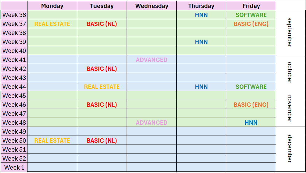 Training Type | Basic | Incompany | HNN | Real Estate | Software | Advanced | Expert Approval |